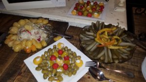 Meg is kezdődik az all inclusive ellátás, magával a fogadással. Forralt bor, tea és kétféle pogácsa.
