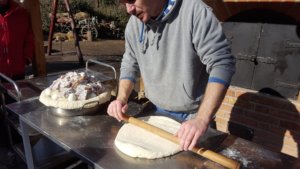 Aztán akadt itt másik látnivaló is. A pékfiú kitolta a szabadtéri kemencéhez a már megkelt cipókat és egy rögtönzött látványpékséget rendezett be.