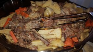 Ebéééééd – kiáltották a menyecskék. Be is mentünk és megebédeltünk. Nem disznótoros, hanem normál magyaros ételek voltak a svédasztalon. Kétféle leves, pörkölt, tarhonya, sültek, gyönyörűen kínált savanyúságok, almás lepény.