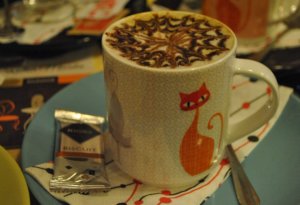 A két helyiség telis-tele van macskás relikviákkal, tárgyakkal, folyóiratokkal, de még az ingyenes wi-fi jelszava is jellemző a helyre. Aztán ha mindez nem elég, akkor vásárolhatsz macskamentás párnát, különféle cicás tárgyakat, például kultúrmacskás bögrét is.