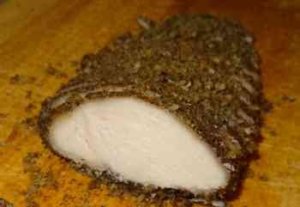 Újabb hidegen felszelhető csirkemell-sültet tudatok Veletek. Ez hasonlít a borsos csirkemellhez, de most a bevonat darált dióval “enyhül”. Kiválóan alkalmazható hidegtálakhoz, vagy szendvicsek, falatkák készítéséhez. A darált dió valami nagyon különleges ízt kölcsönöz neki.