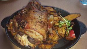 Most azonban valami mást kaptam. A csülök hibátlan volt, a megszokott ízzel és állaggal. A csülök alá gondosan elrejtett egyebek azonban gyalázatosra sikeredtek. Kevés volt a vele sült a hagyma és hát a krumpli …… valami szénné égett maradvány – mintha egy tűzkár maradványait mentette volna a szakács a tányéromra. Csupa fekete, ehetetlen darab.