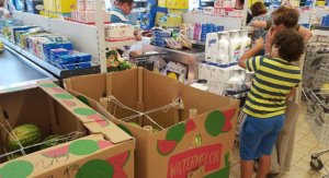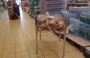 Ha pedig valaki ezt még tágasnak tartotta volna, akkor a pénztárak elé nyomtak pár óriási dinnyés raklapot, a polcok elé pedig ásványvizes, üdítős és WC papiros raklapokat tettek.
